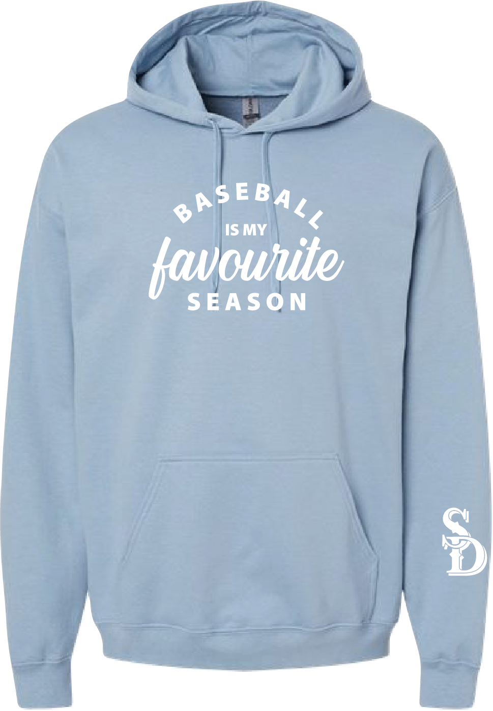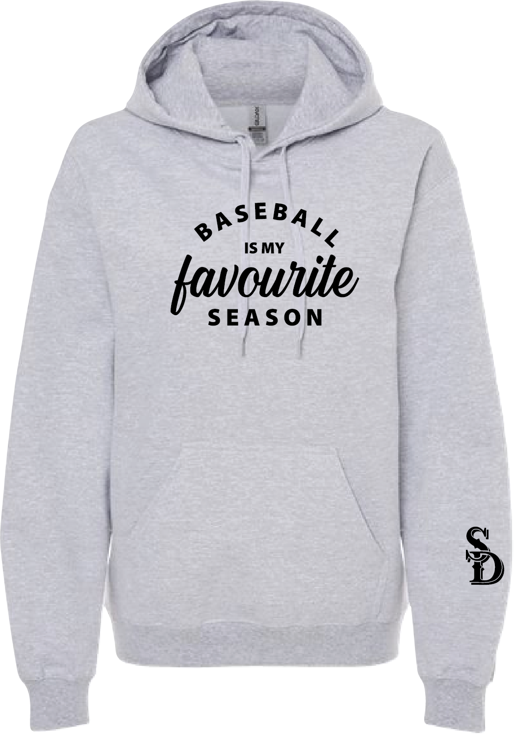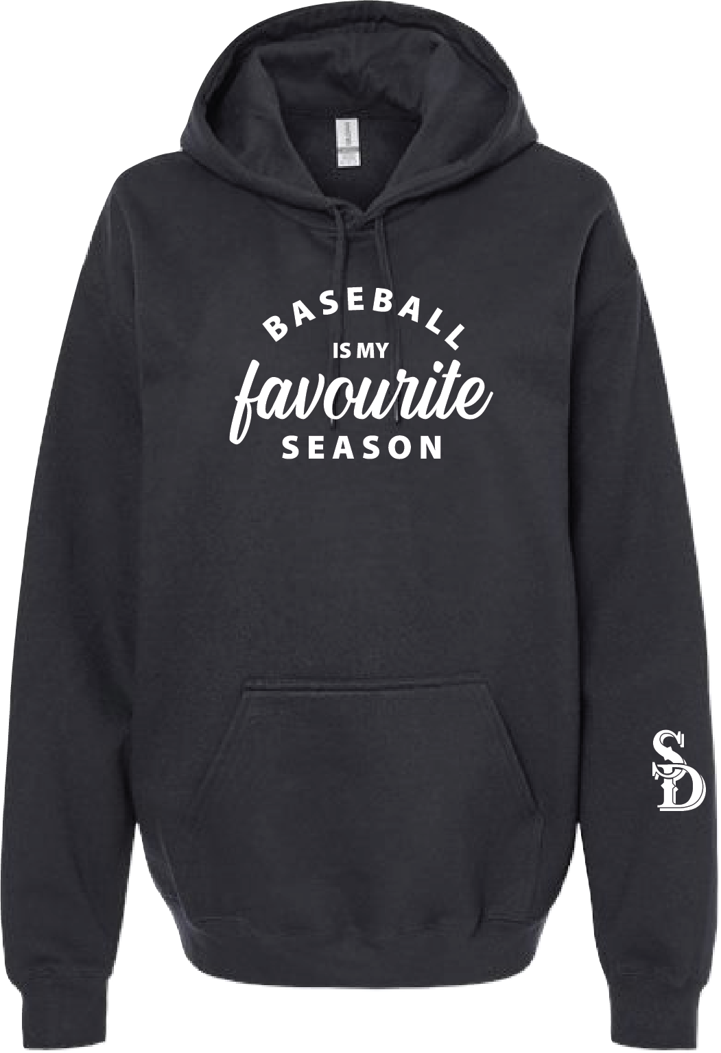 Cotton/Fleece Softstyle Hoodie with the Baseball is My Favourite Logo printed on the full front.