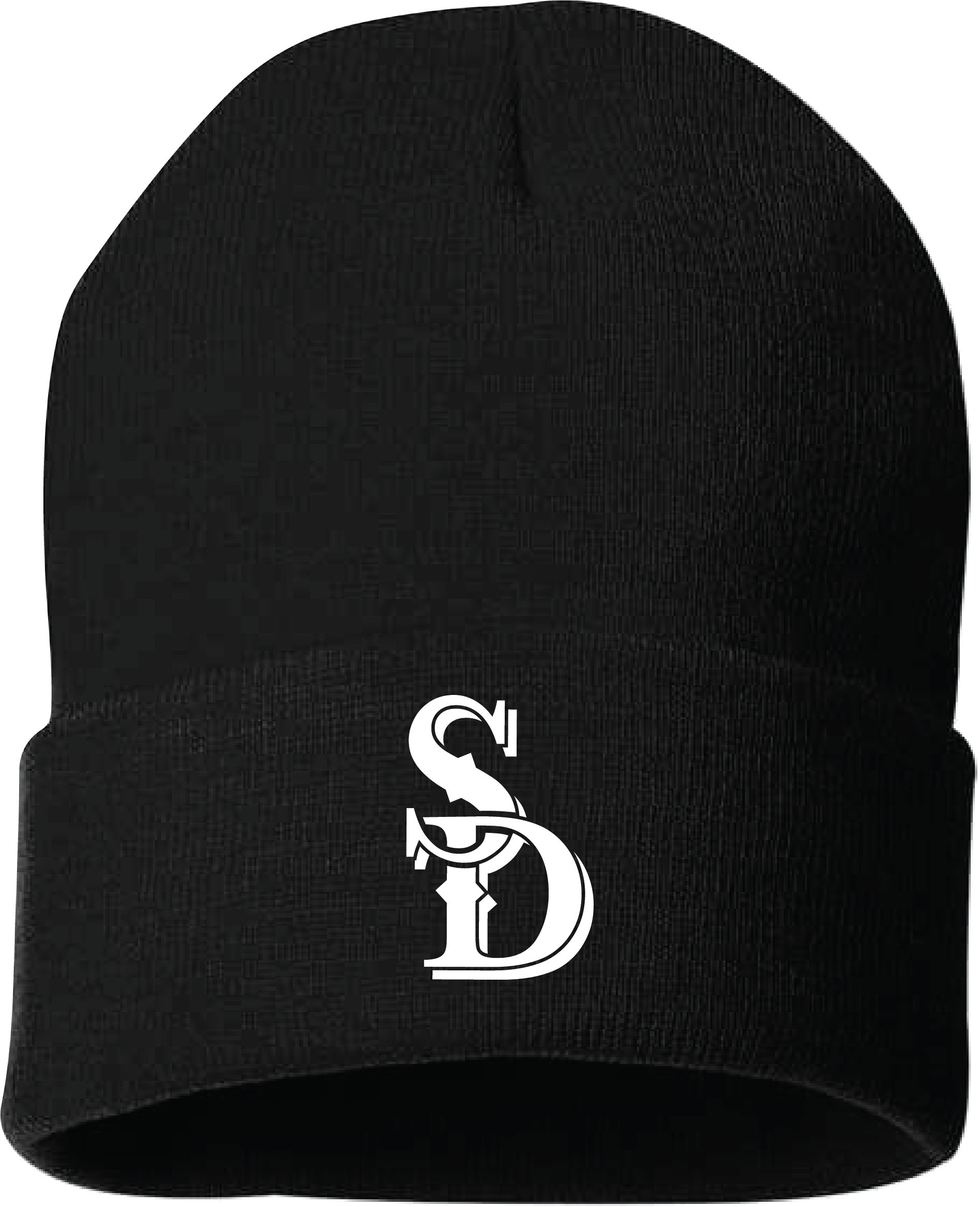 12" Cuffed Toque, Pom or no Pom, Embroidered with a the SD Logo on the front.