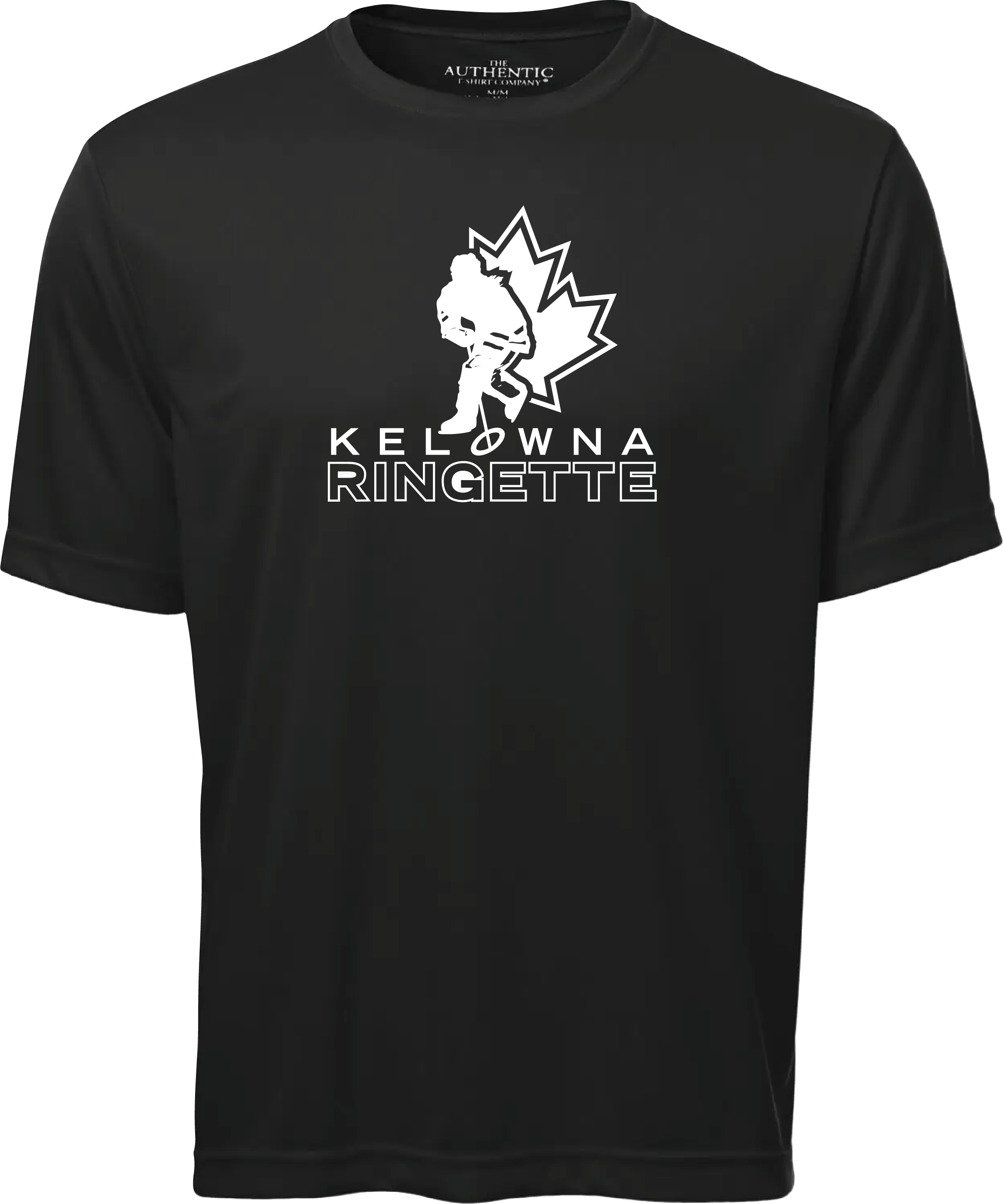 Athletic, Dri-Fit Moisture wicking t-shirt with the Kelowna Ringette design printed on the front.