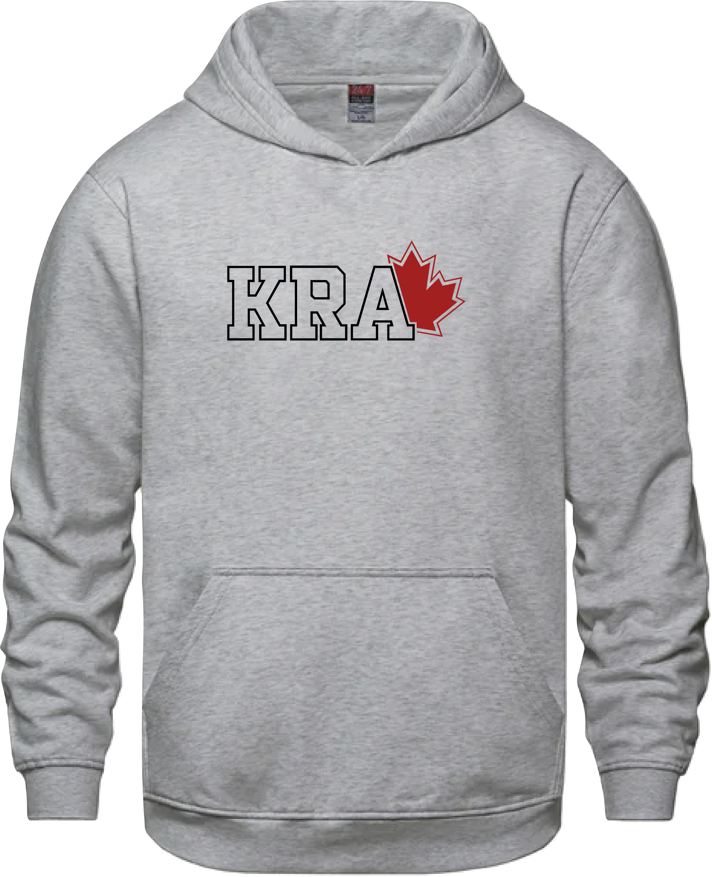 Cotton Fleece Pullover Hoodie with the New Kelowna Ringette design printed on the front.
