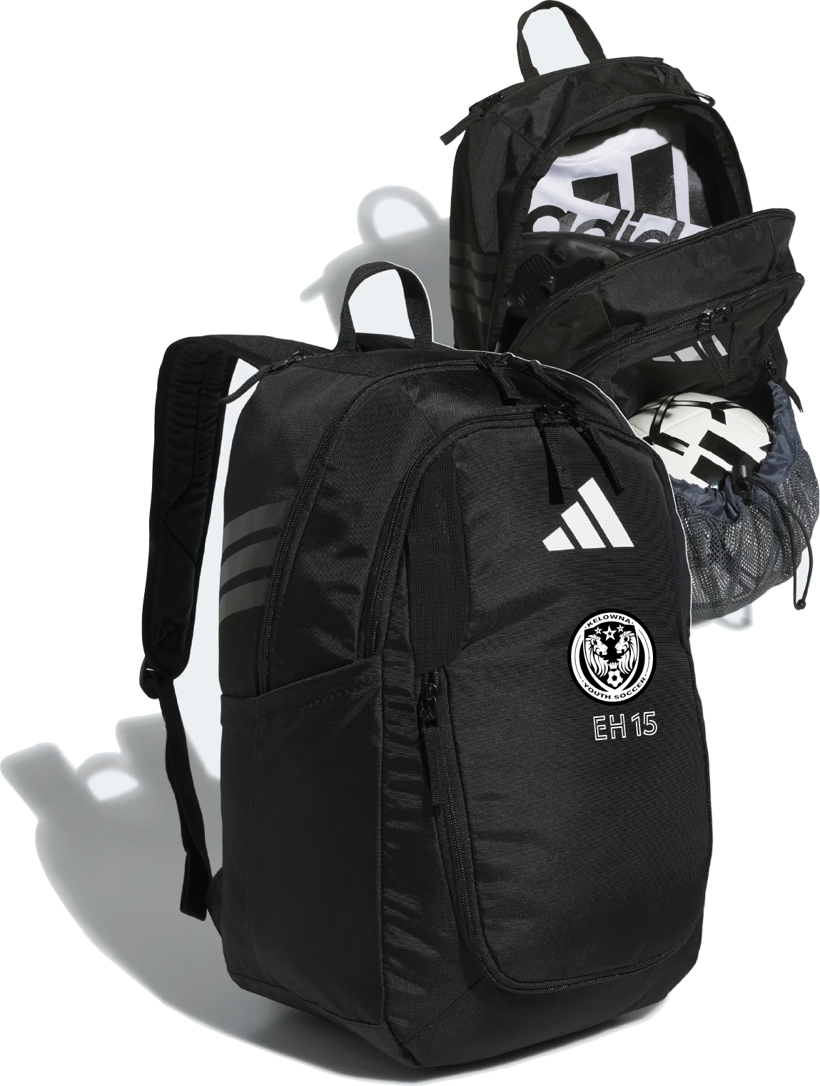 Made from lightweight, durable polyester, this versatile adidas backpack keeps stuff organized and dry thanks to a water-resistant base. Multiple zip pockets keep your gear separated, including one that can hold a size 5 soccer ball and two mesh side pockets that can each hold a 32 oz water bottle. There's also a vented pocket to store dirty gear and a clip to attach essentials. Score!